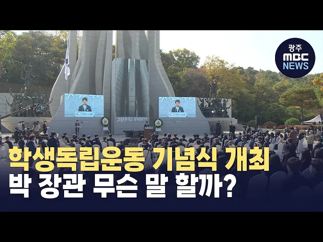 제94주년 학생독립운동 기념식이오늘(3) 광주에서 거행됩니다.국가보훈부는 오늘 오전 11시광주 서구 학생독립운동기념탑에서독립유공자 유족 등 350명을 초청해'타오르는 그날의 불꽃으로'라는주제로 기념을 개최한다고 밝혔습니다.지난해에 이어 올해에도 기념식에 참석할 예정인 박민식 보훈부 장관은최근 정율성 역사공...
