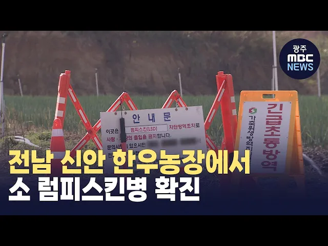 전남 신안군 임자면의 한 한우농장에서 소 럼피스킨병이 확인됐습니다.어제(31) 해당 농장에서 사육중인 소 가운데5마리가 피부 결절 등의 증세를 보여농림축산검역본부의 정밀진단이 진행됐으며럼피스킨병 확진 판정을 받았습니다.방역당국은 이 농장에서 키우던 소 60마리를 모두 살처분할 예정이며 반경 10km 내 46개 축...