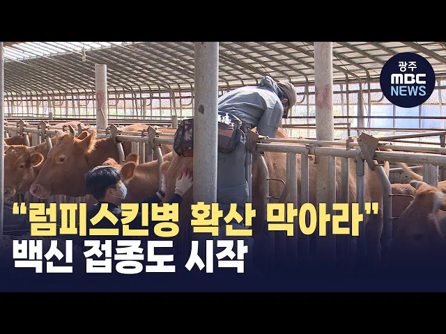(앵커)그동안 소 럼피스킨병 청정지역있던전남까지 뚫리면서 도내 축산농가는 말 그대로 비상입니다.방역당국은 더이상의 확산을 막기 위해차단방역을 강화하고 있고 럼피스킨병 백신접종도 시작했습니다.박종호 기자가 취재했습니다.(기자)소 40여마리를 키우고 있는 함평의 한 한우농가소 럼피스킨병 백신접종 작업이 하...
