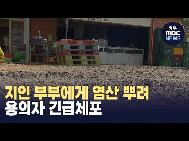 (앵커)50대 부부에게 염산으로 추정되는 화학물질을 뿌리고 달아난 남성이 경찰에 붙잡혔습니다.평소 알고 지내던 사이였는데 원한이 있어서 범행을 저질렀다고 경찰에진술한 것으로 알려졌습니다.안준호 기자가 취재했습니다.(기자) 전남 무안군 현경면의 한 가게 앞 공터오늘 오전 10시쯤 한 남성이 찾아와 50대 가게 주...