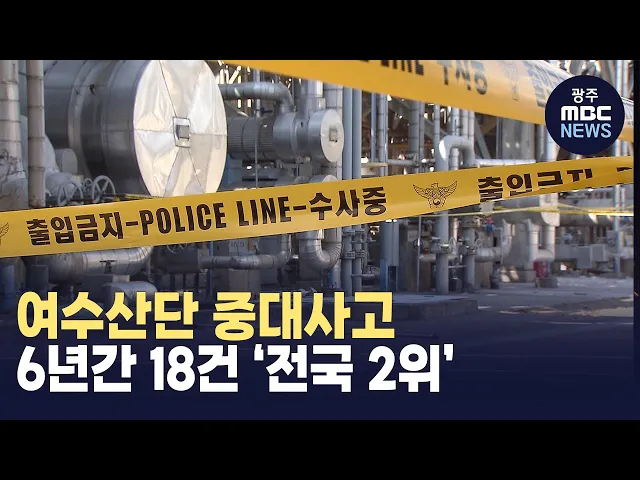 최근 6년간 여수국가산업단지에서 발생한 중대사고 건수가 울산에 이어 전국에서 두 번째 많은 것으로 나타났습니다.한국산업단지공단 자료에 따르면지난 2018년부터 올해 8월까지전국 국가산단 중대사고 150건 가운데12%인 18건이 여수국가산단에서 발생했습니다.유형별로는 산업재해가 7건,가스·화학물질 5건, 폭발과 화...