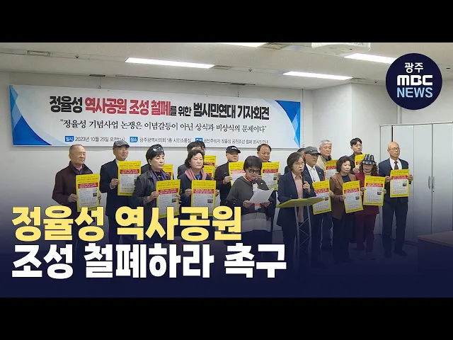 일부 5·18공법단체와 연평도포격 유족회 회원 등지역 15개 시민단체로 구성된 정율성 역사공원 조성 철폐를 위한 범시민연대는 오늘(25) 광주시의회에서 기자회견을 열고"정율성 기념사업 논쟁은 이념갈등이 아닌 상식과 비상식의 문제"라고 주장했습니다. 단체들은 "자유민주주의 국가인 대한민국에서공산주의자인 정율성...
