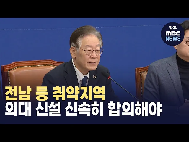 이재명 더불어민주당 대표가오늘(23) 국회에서 열린민주당 최고위원회의에서전남 의대 신설 문제를 신속히합의해야 한다고 강조했습니다. 이 대표는 최근 정부가 추진하는 의대 정원 확대를 언급하며 "한 번 말했으면 말로 끝날 것이 아니라 실천해야 한다"고 말한데 이어 "의대가 없는 전남 등의 취약 지역에의대 신설 문...