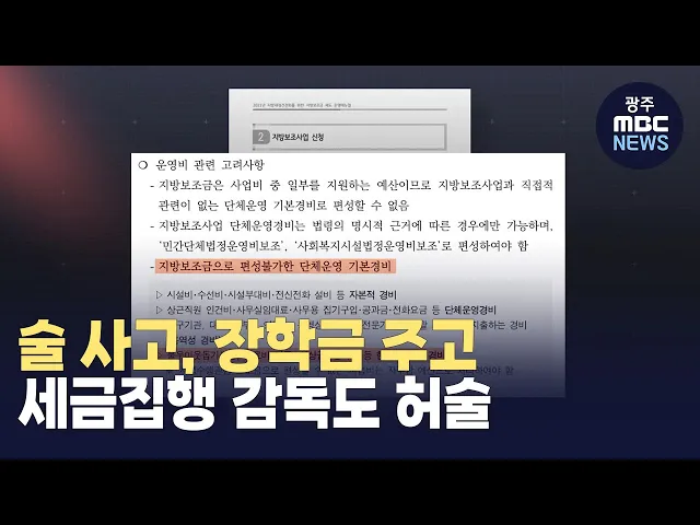 (앵커) 전남도청 각 부서들은 매년 민간단체들에게보조금을 지원해주고 있습니다.그런데 이 보조금이 술을 사는 데 쓰이거나, 장학금으로 지급되는 등 부적정하게 사용된 사실이 전라남도 감사에서 드러났습니다.전라남도 역시 관리감독 책임에서 자유롭지 않아 보입니다.박종호 기자가 보도합니다.(기자)전남의 한 대학입...