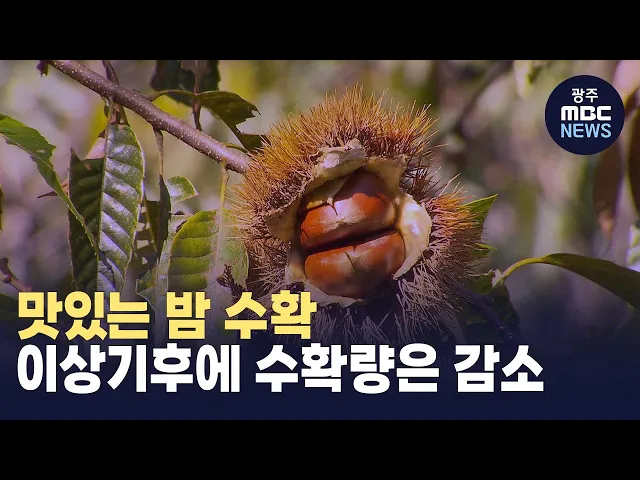 (앵커)고슬고슬하게 밤 쪄서 먹기 좋은 계절입니다.주산지 광양에서는 요즘 막바지 밤 수확이 한창인데요.하지만 올해 잦은 폭우와 폭염으로 밤 수매량이 예년만 못하다고 합니다.김단비 기자입니다.(기자)광양 백운산 자락에 위치한 밤 농가입니다.60년 동안 밤농사를 지어온 노부부가밤 줍기에 여념 없습니다.바닥에 떨...