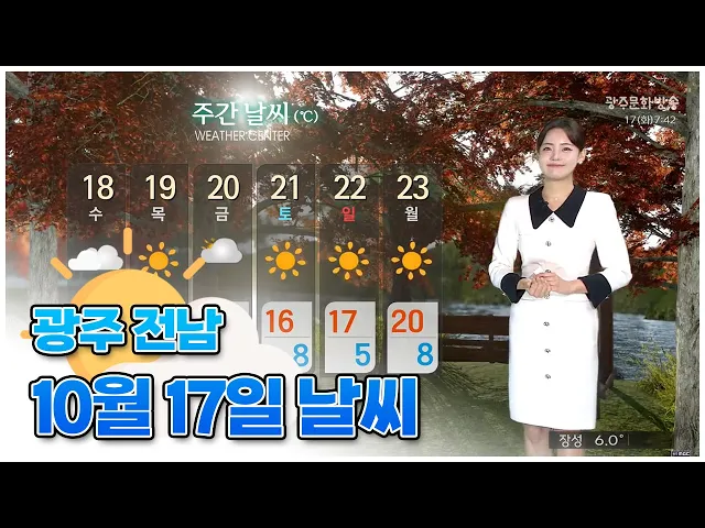 오늘 출근길은평소보다 따뜻한 옷차림으로 나서셔야겠습니다.광주의 기온 한자릿수대로 시작하면서어제보다 3-4도 낮은 기온 보이고 있고요.올 가을들어 가장 추운 출근길 날씨가이어지고 있습니다.한낮기온은 21도로 어제와 비슷하겠고,일교차는 10도 이상으로 크게 벌어지겠습니다.기온변화가 큰 날씨가 장기간 지속되고 ...