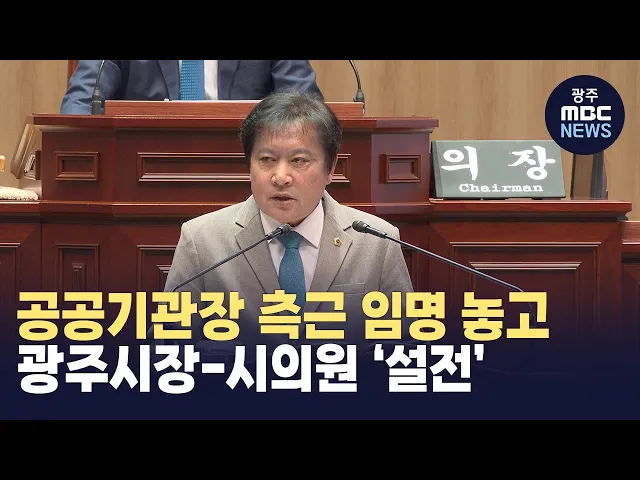 오늘 광주시 시정질문에서는이른바 '엽관제'를 두고강기정 시장과 박희율 광주시의원 간의설전이 벌어졌습니다. 박희율 광주시의원은 시정질문에서 "지난해부터 광주시에서 지방별정직 등으로 채용한 50명 가운데 상당수가 강기정 시장 선거 캠프 출신"이라며보은 임용을 중단하라"고 주장했습니다.이에 대해 강기정 시장은...
