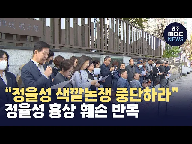 (앵커)박민식 국가보훈부 장관이 문제제기 이후정율성사업의 이념 논란에서 그동안 주로 보수단체들이 목소리를 높여왔는데요.양림동 주민들과 시민단체들이 나서광주시민들을 편가르기하지 말라며기자회견을 열었습니다.이 와중에 양림동에 있는 정율성 흉상은훼손이 반복되고 있습니다.천홍희 기자가 보도합니다. (기자)...