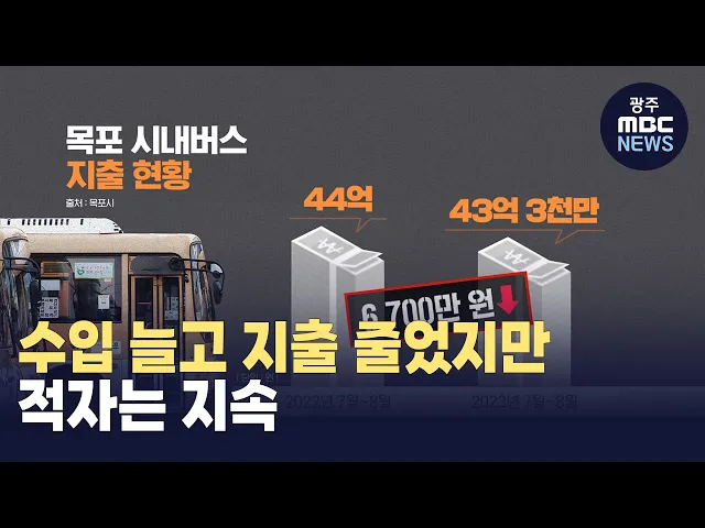 '목포시내버스' 수입↑ 지출↓...적자는 누적