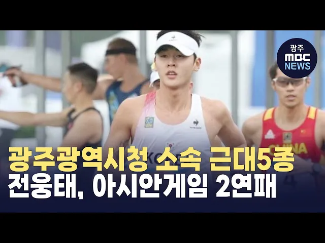 광주시청 소속의 한국 근대5종 국가대표 전웅태 선수가 항저우 아시안게임에서 대한민국 선수단 첫 2관왕을 달성했습니다. 전웅태는 어제(24) 항저우 푸양 인후 스포츠센터에서 열린 대회 결승전에서 펜싱, 수영, 승마, 육상, 사격 경기 합계 1508점으로, 정상에 올라 아시안게임 개인전 2번째 금메달을 목에 걸었습니다. ...
