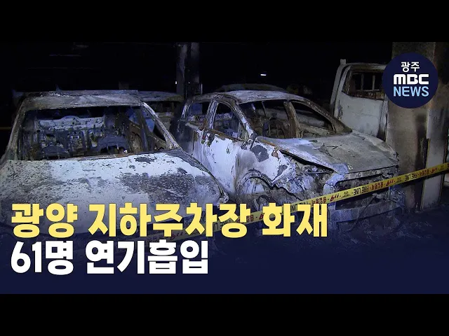 (앵커) 오늘 새벽, 전남 광양의 한 아파트 지하주차장에서 큰 불이 났습니다. 주민 60여명이 연기를 마셔 병원으로 옮겨졌고 백명이 넘는 주민들이 대피했습니다. 강서영 기자입니다. (기자) 광양시 광양읍의 한 아파트 지하주차장. 온통 새까만 재로 뒤덮였고, 승용차들은 원래 모습을 알아보기 힘들 정도로 심하게 탔습니...