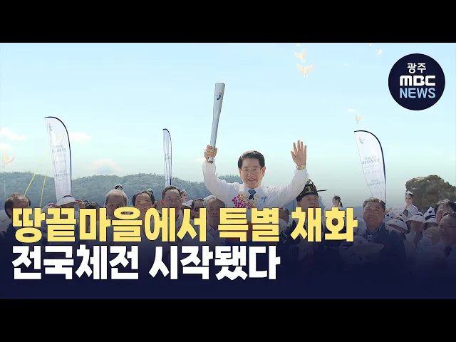 (앵커) 제 104회 전국체전이 20여일 앞으로 다가온 가운데 해남에서 전국체전 성화가 특별 채화됐습니다. 전남 곳곳에서 전국체전 분위기가 점차 무르익어가고 있습니다. 안준호 기자가 취재했습니다. (기자)전국체전 첫번째 성화가 특별 채화된 대한민국 최남단 해남군 땅끝마을 제 104회 전국체전과 43회 전국장애인체전...