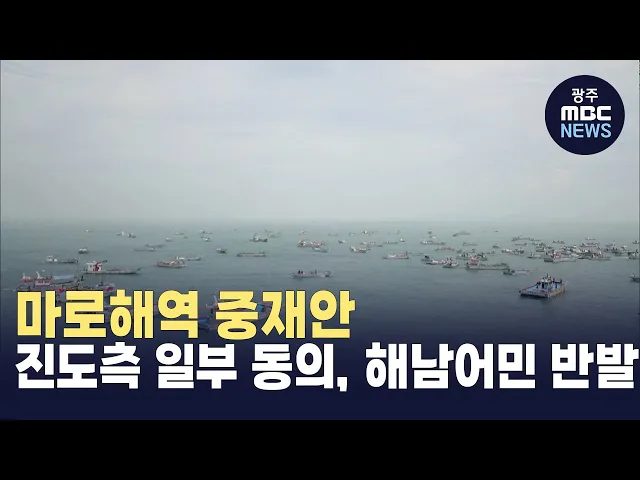 마로해역 분쟁과 관련해 전남도 중재안에 진도측은 긍정적인 반응을 보였지만, 해남측 어민들은 크게 반발하고 나섰습니다. 전라남도가 제시한 중재안을 보면 해남군은 진도군에 어장의 10%를 올해 반환하고, 상생협력금으로 매년 2억원씩 지급하는 한편, 향후 권한쟁의 심판을 포기하는 내용입니다. 진도측 어민들이 면허...