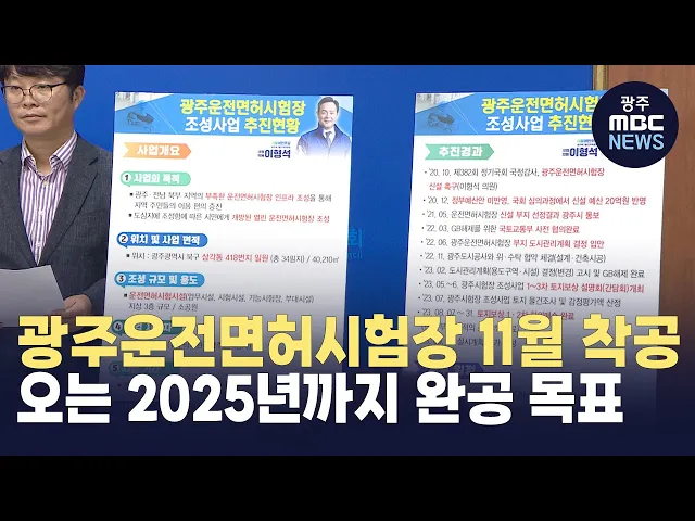 광주시민들의 숙원사업인 광주운전면허시험장이 오는 11월 착공됩니다. 더불어민주당 이형석 의원은 오늘(12일) 광주시의회에서 기자회견을 열고 '21대 총선 1호 공약으로 제시했던 광주운전면허시험장 건립 사업이 오는 2025년 말 완공을 목표로 추진된다고 밝혔습니다. 광주운전면허시험장은 북구 삼각동 일원에 연면적 4...