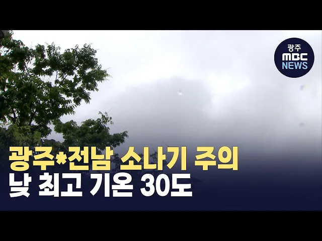 오늘도 무더운 날씨가 이어지는 가운데 광주 전남 곳곳에는 소나기가 내리겠습니다. 광주지방기상청에 따르면 오늘(12) 오후부터 광주와 전남 대부분 지역에 돌풍과 천둥 번개를 동반한 최대 20mm의 소나기가 내리겠습니다. 오늘(12) 낮 최고기온은 광주 30, 담양 31, 화순 31도 등 30도 내외로 어제(11)보다 1도가량 낮습...