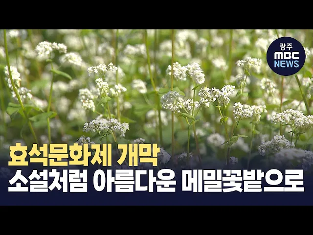 (앵커)소설 '메밀꽃필무렵'의 배경인 평창봉평에서 효석문화제가 개막했습니다.50만 제곱미터의 메밀밭 가득소금을 뿌린것 처럼 하얀 메밀꽃이 피었다고 하는데요.원주문화방송 유나은 기자가 현장에 다녀왔습니다.파란하늘 아래 끝없이 펼쳐진 메밀꽃밭.활짝핀 하얀 메밀꽃들이 간간히 불어오는바람에 흔들리며 꽃물결이 ...