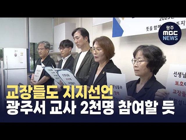 (앵커) 서이초등학교에서 숨진 교사의 49재를 맞아 열리는 교사들의 추모 집회에 광주 전남지역 교사들도 단체 행동을 예고했습니다. 하지만 교육부가 제동을 걸면서, 현장에선 혼란이 계속되고 있는데요. 평교사들에게 힘을 실어주겠다며, 광주의 38개 학교의 교장들이 지지 목소리를 냈는데 월요일 집회에 광주에서는 교...