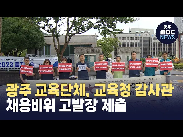 전교조와 교사노동조합 등 광주지역 교육단체들이 광주시교육청 감사관 채용 비리와 관련해 검찰에 고발장을 제출했습니다. 이들 단체들은 지난 해 9월 발생한 시교육청 3급 감사관 채용 비리는 인사 담당자가 단독으로 결정하기 어려웠던만큼 채용 과정에서 부당한 업무 지시가 있었는 지 등을 수사해 달라고 요청했습니다...