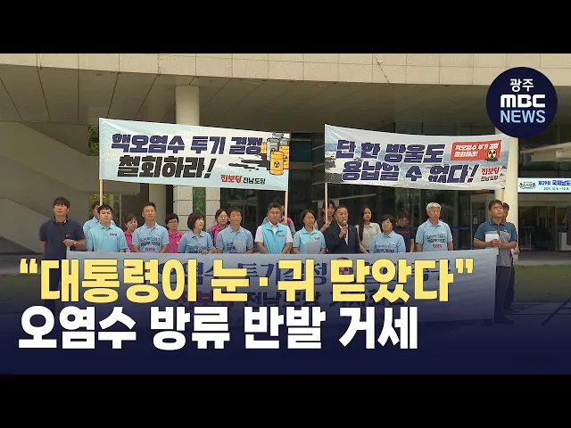 일본 원전 오염수 방류가 하루 앞으로 다가온 가운데 지역 정치권의 반발이 거세지고 있습니다. 진보당 전남도당은 전남도청 앞에서 기자회견을 열고, "국민 대다수가 오염수 방류에 반대하는데도 윤석열 대통령이 눈과 귀를 닫았다"며 지금이라도 핵 오염수 투기 결정을 막아야 한다고 주장했습니다. 정의당도 "일본은 핵 ...