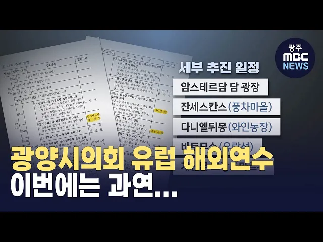 (앵커) 광양시의회가 유럽의 선진 사례를 배우겠다며 다음 달 해외연수를 떠납니다. 기초의회 해외연수 때마다 외유성이라는 비판이 적지 않은데, 수천만 원의 혈세가 들어가는 만큼 시민들이 납득할 수 있는 결과물을 내놓아야 한다는 지적이 나오고 있습니다. 보도에 문형철 기자입니다. (기자)광양시의회가 작성한 국외...