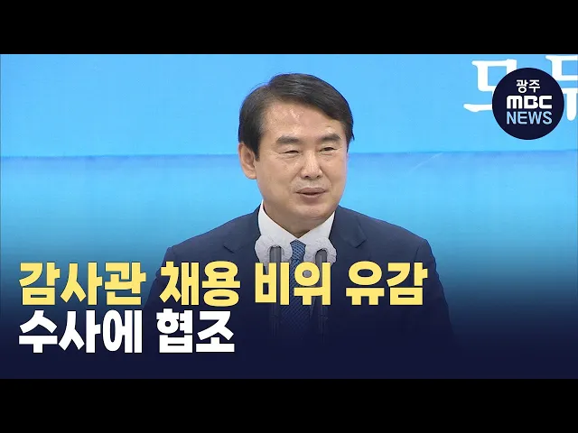 이정선 광주시교육감이 감사관 채용 비위와 관련해 유감을 표명하고 경찰 수사에 협조하겠다고 밝혔습니다. 이정선 교육감은 감사원 감사 결과가 나온 지 12일만에 발표한 입장문을 통해, 인사담당자를 직무배제한 뒤 투명하게 징계 절차를 진행하고 있다며, 경찰 수사에도 협조해 약간의 의혹도 남지 않도록 하겠다고 말했...