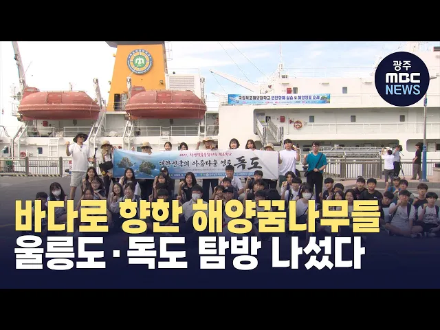 (앵커) 전남지역 중학생들이 목포해양대 실습선을 타고 해양영토순례에 나섰습니다. 울릉도와 독도도 방문할 예정인데 학생들은 3박 4일 동안 바다의 중요성 등을 직접 체험할 예정입니다. 안준호 기자가 취재했습니다. (기자)배낭을 맨 학생들이 목포해양대학교 실습선 앞에 모였습니다. 해양영토순례에 나서는 전남지역 ...