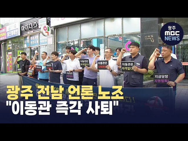 전국 언론노조 광주 전남 협의회가 이동관 방송통신위원장 후보자에 대한 사퇴를 촉구했습니다. 이들은 오늘(17) 더불어민주당 광주시당 앞에서 기자회견을 열고 이명박 정부 시절 언론 장악의 핵심 인물로 꼽혔던 이 후보자가 방송통신위원장을 맡게 되면 지역 방송 발전 계획은 물론 지역방송 재허가까지 졸속으로 처리하...