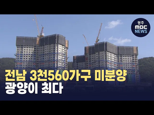 전남 지역 미분양 아파트 수가 크게 늘어난 것으로 집계됐습니다. 전라남도 통계를 보면, 지난 6월 말 기준 미분양 아파트 수는 3천560가구로, 전달보다 500여 가구 증가한 것으로 집계됐습니다. 전남에서 미분양 물량이 가장 많은 지역은 광양인데, 총 1천756가구로, 같은 기간 500가구 넘게 늘면서 전체 물량 급증에 영향...