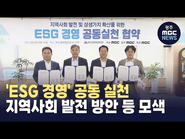 여수광양항만공사와 지역MBC 3사가 지역사회 발전과 상생가치 확산을 위해 협력하기로 했습니다. 여수광앙항만공사와 광주, 목포, 여수MBC 3사는 오늘(16) 'ESG경영 공동실천' 업무협약을 체결하고 에너지 소비 절감과 신재생에너지 확대, 자원순환 활동 등을 통해 지역사회 환경을 개선해 나가기로 했습니다. 또, 지역경제...