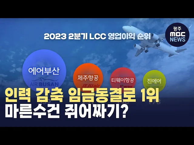 (앵커)에어부산이 국내 저비용 항공사들 가운데 올해 2분기 최대 영업이익을 달성했습니다. 매출로는 저비용항공사 4위 수준인데도 이같은 성과를 올린 건데... 이런 성적의 이면에는 인력과 비용 감축, 임금동결이 있었습니다. 이만흥기자. (기자) 올 2분기 국내 저비용항공사들의 실적 발표 결과, 매출액 1위는 제주항공...