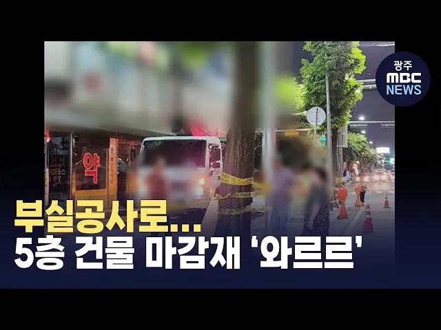 어제(1) 오후 8시쯤, 광주 동구 계림동의 5층짜리 건물에서 외벽 마감재가 인도로 떨어지는 사고가 났습니다. 이 마감재는 1미터 정도의 크기로 알려졌는데 당시 주변에 사람이 없어 다행히 다친 사람은 없었습니다. 신고를 받고 출동한 경찰과 소방은 추가 피해가 없도록 현장 주변에 통제선을 설치했으며, 부실 공사로 인...