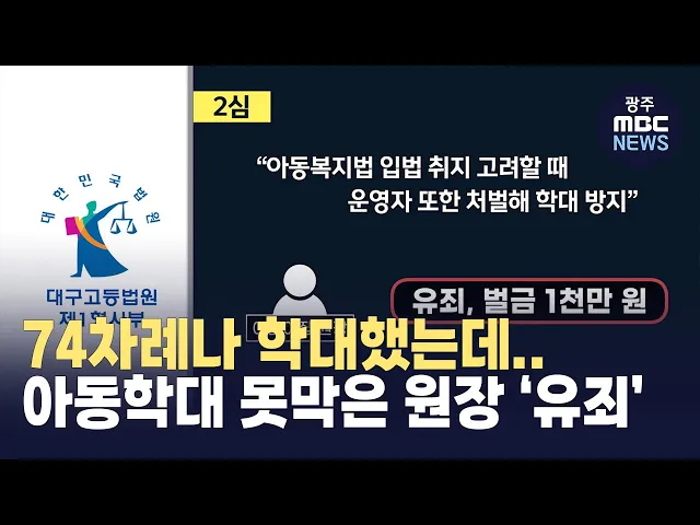 (앵커) 지난달 보육교사의 아동학대 범죄를 막지 못한 어린이집 원장에게도 책임 있다는 광주지법의 판단이 있었죠. 경북 영주의 한 어린이집에서도 어린이 10명 집단학대 범죄를 막지 못한 어린이집 원장에게 벌금형의 유죄가 선고됐습니다. 안동문화방송 김서현 기자가 보도합니다. (기자)피해 아동 부모들이 경찰 고소 ...