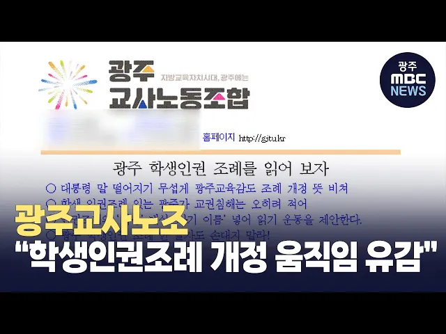 대통령이 서이초 교사 사망사건 대책으로 교권보장을 위한 학생인권조례 개정 의지를 밝힌데 이어 광주교육감도 동의하자, 광주교사노동조합이 유감을 표했습니다. 이들은 입장문을 내고 "학생인권이 보장될수록 교사의 교육권도 높게 보장된다. "조례 때문에 교권이 무너졌다는 논리는 대꾸할 가치조차 없다"며 "교권을 보...