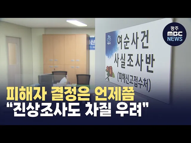 (앵커) 여순사건 피해 신고 접수가 시작된지 1년 6개월이 지났지만, 아직도 수 많은 유족들이 공식적인 피해자로 인정받을 날만을 기다리며 애를 태우고 있는데요. 중앙위원회 결정은 늦어지고 있고, 진상조사와 보고서 작성도 차질을 빚을 것이라는 우려가 커지고 있는 상황입니다. 문형철 기자입니다. (기자)지난해 1월 ...