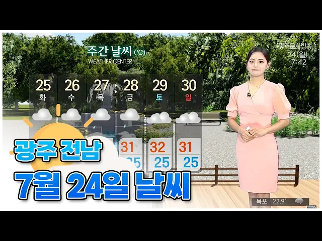광주와 전남 지역은 모레(25일)까지 흐리고 비가 계속되겠습니다. 오늘(23일)부터 모레까지 광주와 전남 지역의 예상 강수량은 50~100mm이며, 많은 곳은 150mm 이상 비가 내릴 것으로 보입니다. 기상청은 비가 강하고 많이 내리겠고, 돌풍과 천둥, 번개를 동반할 것으로 예상된다며, 주의를 당부했습니다.