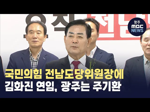 김화진 국민의힘 전남도당위원장이 연임에 성공했습니다. 국민의힘 전남도당 선거관리위원회는 오늘(21) 김화진 전 위원장과 고영호 여수갑 당협위원장의 경선 투표 결과 김 위원장이 당선 득표를 얻었다고 발표했습니다. 광주시당도 전날(20) 운영위원회를 열고 주기환 국민의힘 중앙당 대표 특별보좌역을 신임 시당위원장...