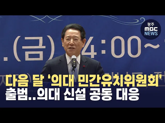 전남지역 의대 신설을 위한 민간유치위원회 구성이 추진됩니다. 전라남도는 다음 달 '의과대학 민간유치위원회'를 출범시킨 뒤 의료 여건이 취약한 다른 지역과 연대해 의대 신설을 공동 건의할 계획이라고 밝혔습니다. 또, 정부와 국회, 대한의사협회를 상대로 의대 신설을 위한 건의 활동을 벌이고, 다중이용시설 광고 등...