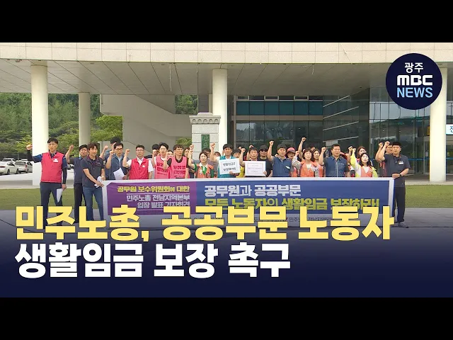 민주노총 전남지역본부가 공무원과 공공부문 모든 노동자들의 생활임금 보장을 촉구하고 나섰습니다. 민주노총 전남본부는 어제 전남도청 앞에서 기자회견을 열고 공무원 임금이 실질생계비에 비해 턱없이 부족하다며 생활안정을 위해 임금인상이 반드시 필요하다고 주장했습니다. 또 공무원 보수위원회가 공무원 처우개선...