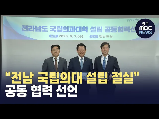 (앵커) 전국 광역 지자체 가운데 유일하게 의대가 없는 전남, 의대 신설은 오랜 숙원 사업이지만 전남 동부권과 서부권이 제각각 유치 경쟁을 펼치면서 한 목소리를 내기가 힘들었습니다. 그동안 따로 의대 유치전을 벌이던 목포대와 순천대가 전라남도와 함께 국립 의과대 설립에 공동 협력하기로 합의했습니다. 안준호 기...