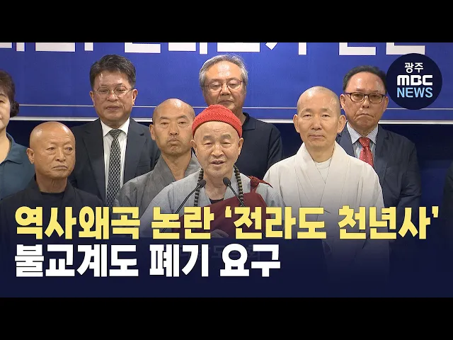 일본 제국주의 식민사관으로 왜곡 논란을 빚고 있는 역사서 '전라도 천년사'에 대해 불교계도 폐기를 촉구하고 나섰습니다. 가야문화진흥원장 도명스님 등 '역사바로세우기 불교연대'는 오늘 전남도의회에서 기자회견을 열고 전라도 천년사 폐기, 편찬위원회의 해체와 함께 내용 검증 등의 과정을 시도민에게 투명하게 공...