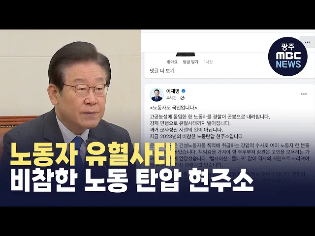 더불어민주당 이재명 대표가 어제(31) 포스코 광양제철소 앞에서 발생한 경찰의 한국노총 간부 체포 과정을 두고, 2023년 비참한 노동 탄압 현주소라고 비판했습니다. 이 대표는 오늘 SNS에 글을 올려, 고공농성에 돌입한 노동자를 경찰이 곤봉으로 내려치고 강제 연행으로 유혈사태까지 벌어진 게 과거 군사정권 시절에나 ...