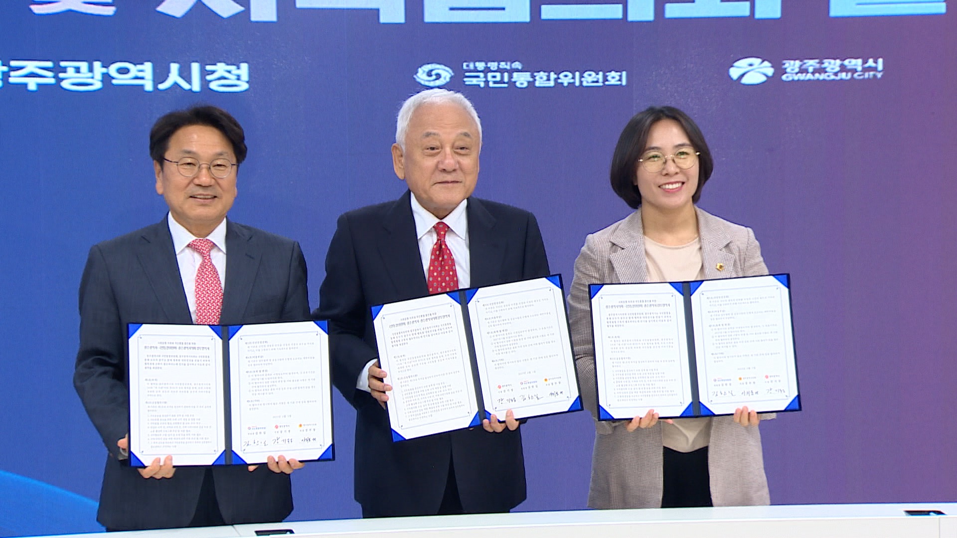 대통령직속 국민통합위원회는 오늘 광주광역시 지역협의회를 출범하고 첫 회의를 열었습니다. 회의에서는 광주시가 추진하는 외국인 주민정책 현황과 추진 과제, 국가인공지능 혁신 거점 구축을 위한 인공지능 생태계 활성화 방안 등이 논의됐습니다. 국민통합위는 또 광주시, 광주시의회와 업무협약을 체결하고 국민통합 ...
