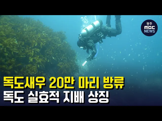 (앵커) 최근 역사를 왜곡한 일본의 독도 영유권 주장이 잇따르면서 독도에 대한 국민적 관심이 커지고 있는데요, 때마침 일명 독도새우로 불리는 도화새우 20만마리를 방류하는 행사가 독도 앞바다에서 펼쳐졌습니다 독도는 우리가 실효적으로 지배하는 우리 땅임을 독도새우 라는 상징으로 보여준 겁니다. 포항문화방송 장...