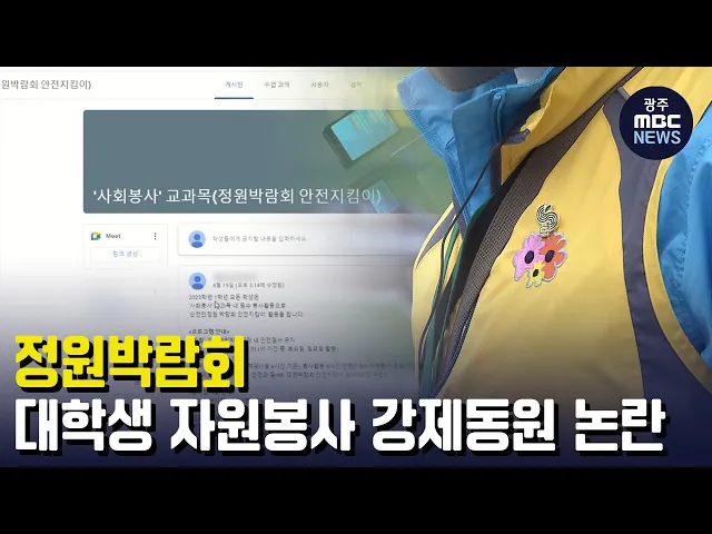 (앵커) 정원해설사나 안전요원 등 순천만정원박람회에서는 많은 자원봉사자들이 활동하고 있는데요. 순천의 한 대학에선 봉사활동을 명목으로 학생들을 박람회에 동원했다는 논란이 일고 있습니다. 강서영 기자입니다. (기자) 순천의 한 대학교의 사회봉사 교양과목 소개 홈페이지입니다. 해당 과목을 이수하려면 정원박람...