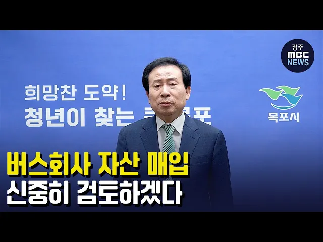 (앵커) (이런가운데)박홍률 목포시장이 태원*유진운수 시내버스 경영포기 발표와 관련해 버스회사 자산 매입 방안을 신중히 검토하겠다고 밝혔습니다. 한편 이한철 대표가 사업 포기를 선언하면서 목포시의회 '해체'를 언급한 것과 관련해 목포시의회는 불편한 감정을 나타내고 있습니다. 김 윤 기자가 취재했습니다. (기자...