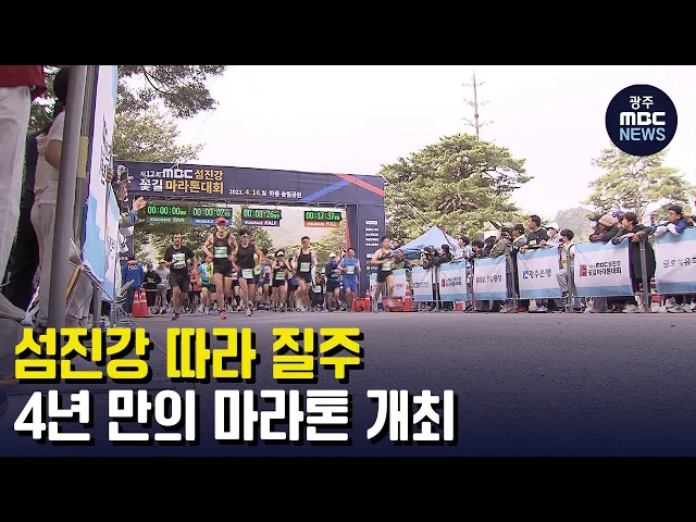 (앵커) 남도의 젖줄, 섬진강을 따라 마라톤대회가 열렸습니다. 영호남이 함께 주최하는 연중 최대 규모의 체육행사로 3쳔 명이 넘는 참가자가 찾았는데요. 4년 만에 열린 대회 현장을 김단비 기자가 다녀왔습니다. (기자)전남 광양과 경남 하동을 사이에 두고 흐르는 섬진강. 섬진강 굽이굽이 감싸 안은 길 따라 지리산 절...