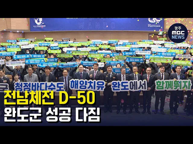 (앵커) 제62회 전남체전이 50일 앞으로 다가온 가운데 개최지인 완도군에서 성공개최 열기가 갈수록 뜨거워 지고 있습니다. 대회준비는 물론 참가 선수단에 해양치유 체험을 제공하는 등 남은 기간 관광활성화 대책에 주력한다는 계획입니다. 신광하 기자가 보도합니다. (기자) 완도군이 설치된 이래 처음으로 열리는 전남...