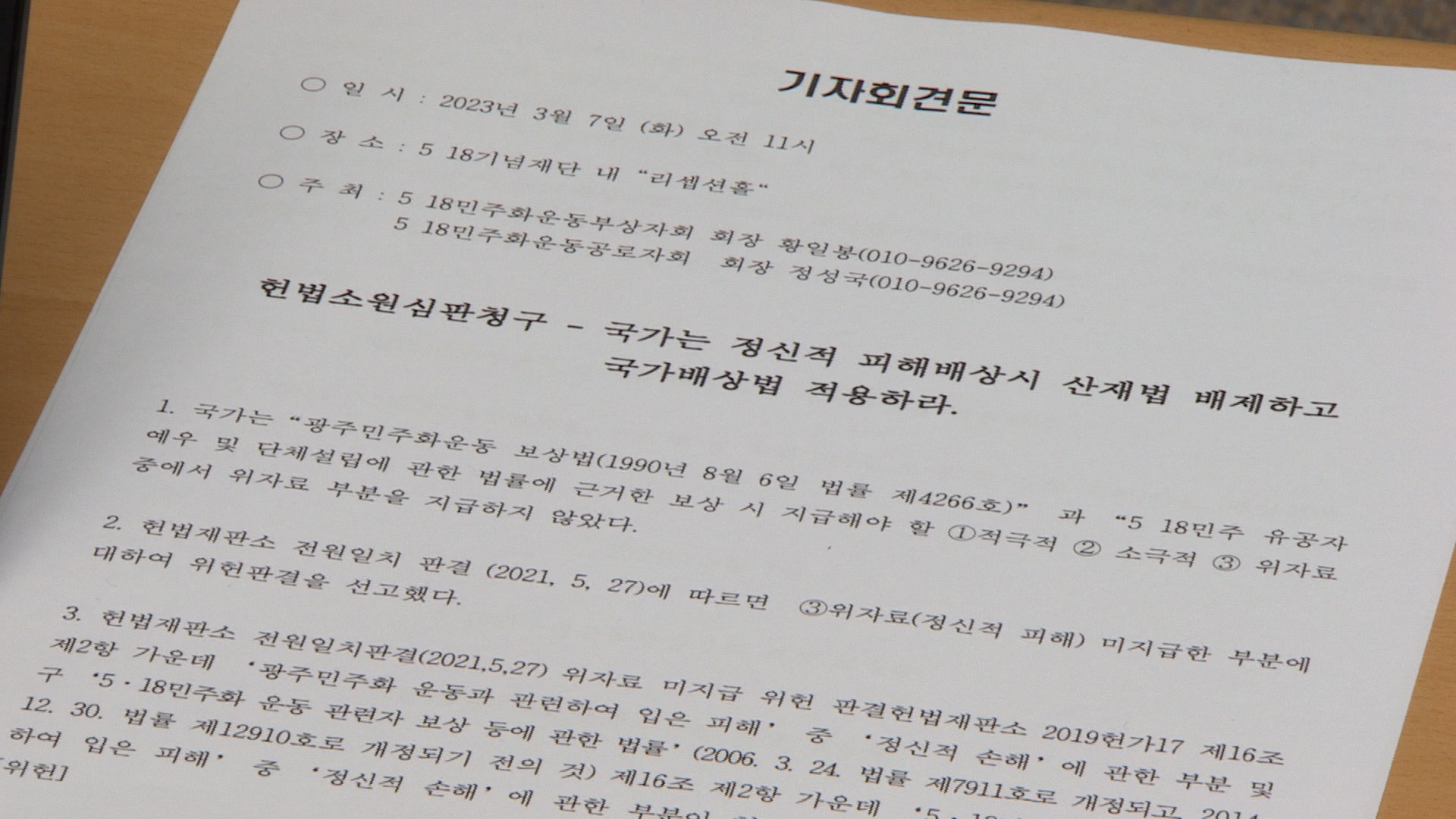 5.18 일부 단체가 5.18 피해보상 기준을 산업재해법에서 국가배상법으로 바꿀 것을 촉구했습니다. 5.18 부상자회와 공로자회는 오늘(8) 기자회견을 열고, 5.18 보상법이 피해자들에 대한 보상 근거가 되고 있지만 해당 법은 산업재해법을 토대로 하고 있어 성별에 따라 보상 금액이 달라지는 등 폐해가 발생하고 있다고 지...