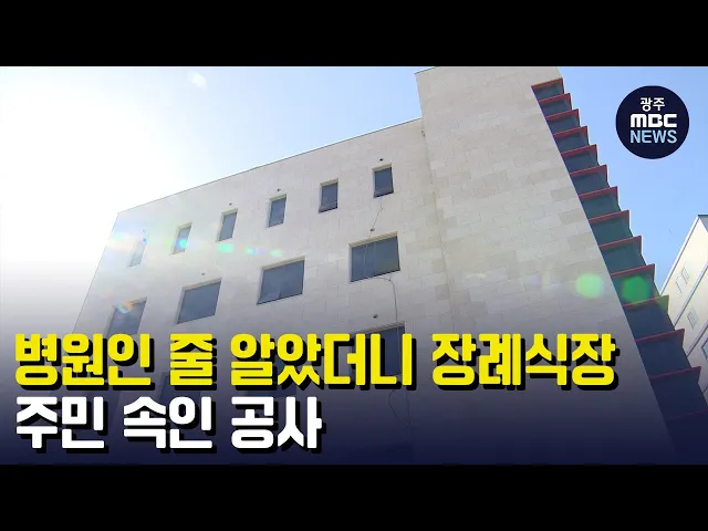 (앵커) 목포의 한 조용한 마을이 장례식장 공사로 발칵 뒤집혔습니다. 요양병원으로 알고 있던 시설이 알고 보니 장례식장었기 때문입니다. 양현승 기자가 취재했습니다. (기자) 서해안고속도로 인근의 목포시 산계마을. 200여 세대가 모여사는 작은 마을 분위기가 최근 흉흉해졌습니다. 마을 어귀에서 20여년 동안 요양병...