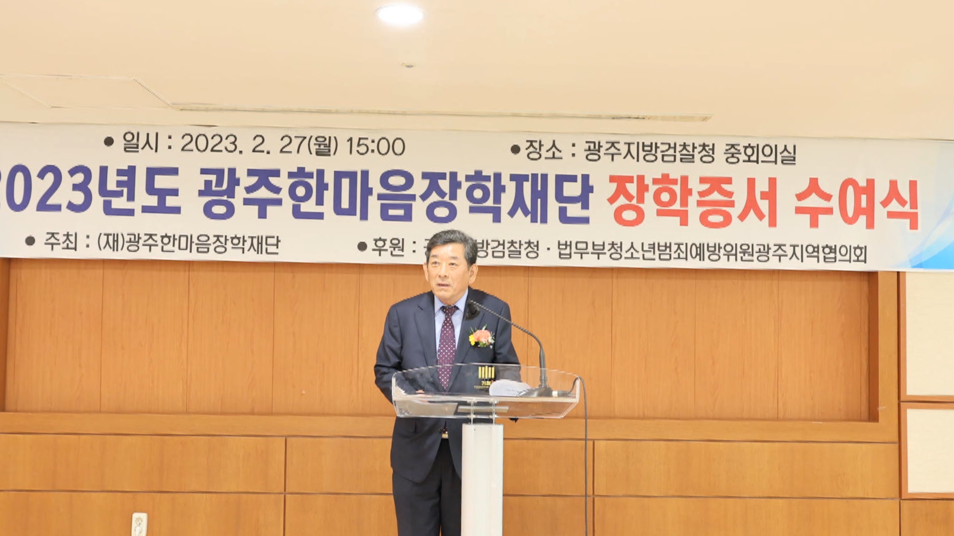 광주한마음장학재단이 조건부 기소 유예 청소년과 북한 이탈 주민 자녀 등 174명에게 장학금을 전달했습니다. 광주한마음장학재단은 오늘(27) 오후 3시광주지방검찰청에서 조건부 기소 유예자 가운데 가정형편이 어려운 학생, 그리고 모범 소년소녀 가장 등 105명과 북한 이탈 주민 자녀 69명에게 장학금 총 2억여 원을 줬...